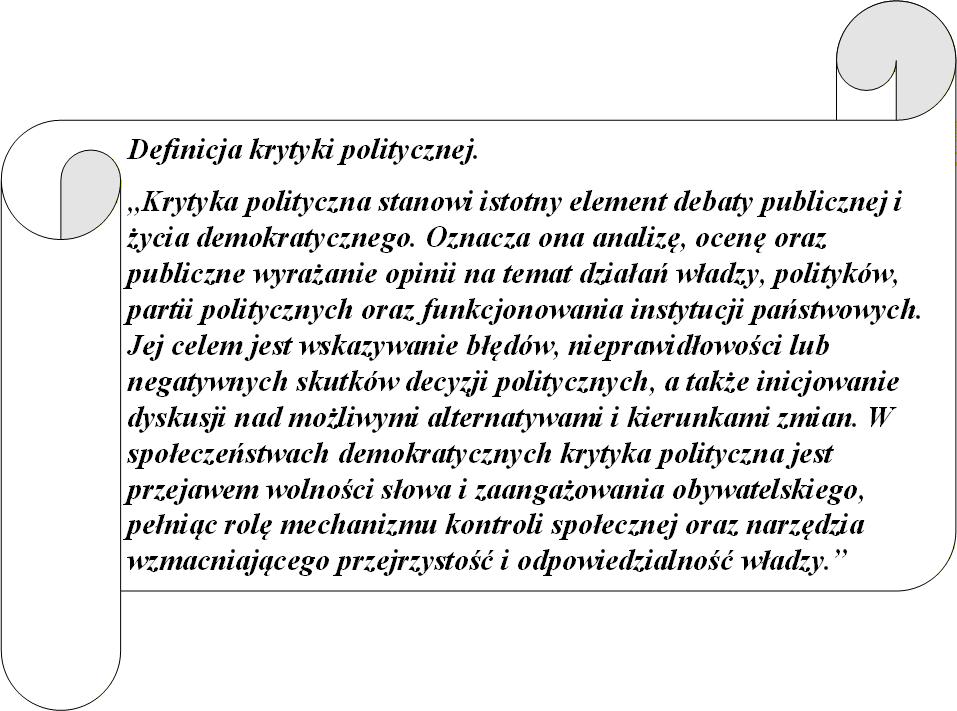 Przecież krytyka decyzji władzy samorządowej nie jest zarzutem personalnym. Jest istotą demokracji lokalnej. Dotyczy kompetencji, nie charakteru; faktów, nie uczuć; skutków, nie intencji. Zarzut personalny zaczyna się tam, gdzie wkraczamy w sferę życia prywatnego. Analiza działań wójta, burmistrza lub prezydenta zaczyna się tam, gdzie wykonywana jest władza publiczna w imieniu wspólnoty.