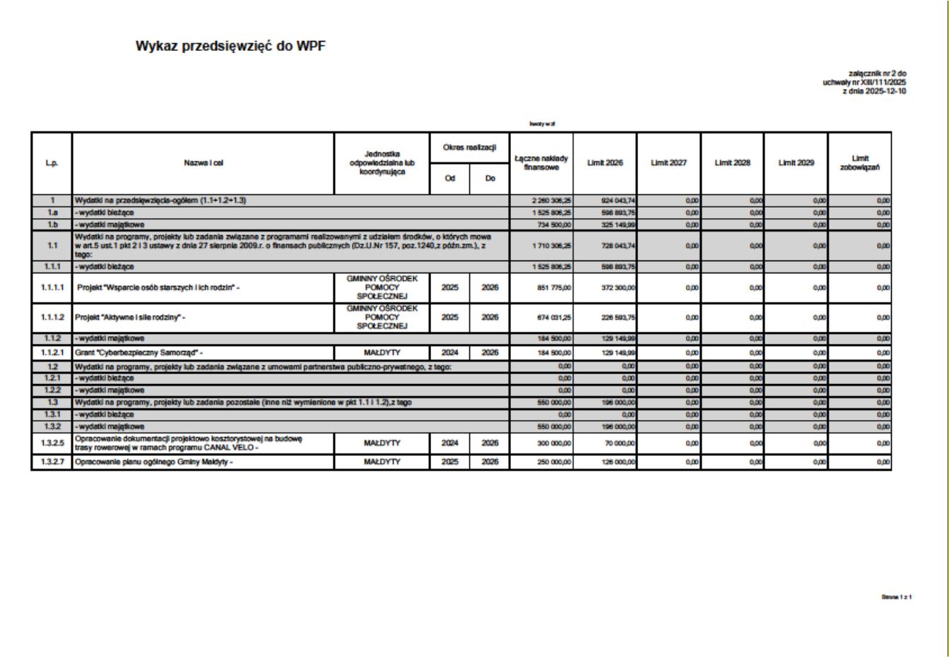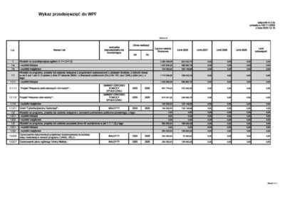 - WPF nie zawiera listy przedsięwzięć ani montażu finansowego → dokument utrzymaniowy, a nie prorozwojowy.