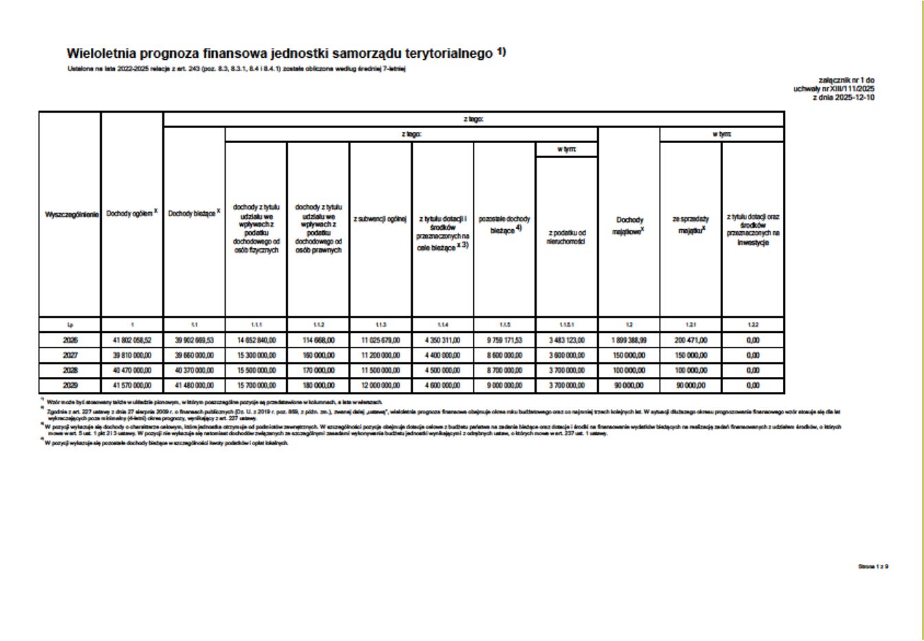 - gmina nie planuje realnych inwestycji rozwojowych w latach 2026–2029,
